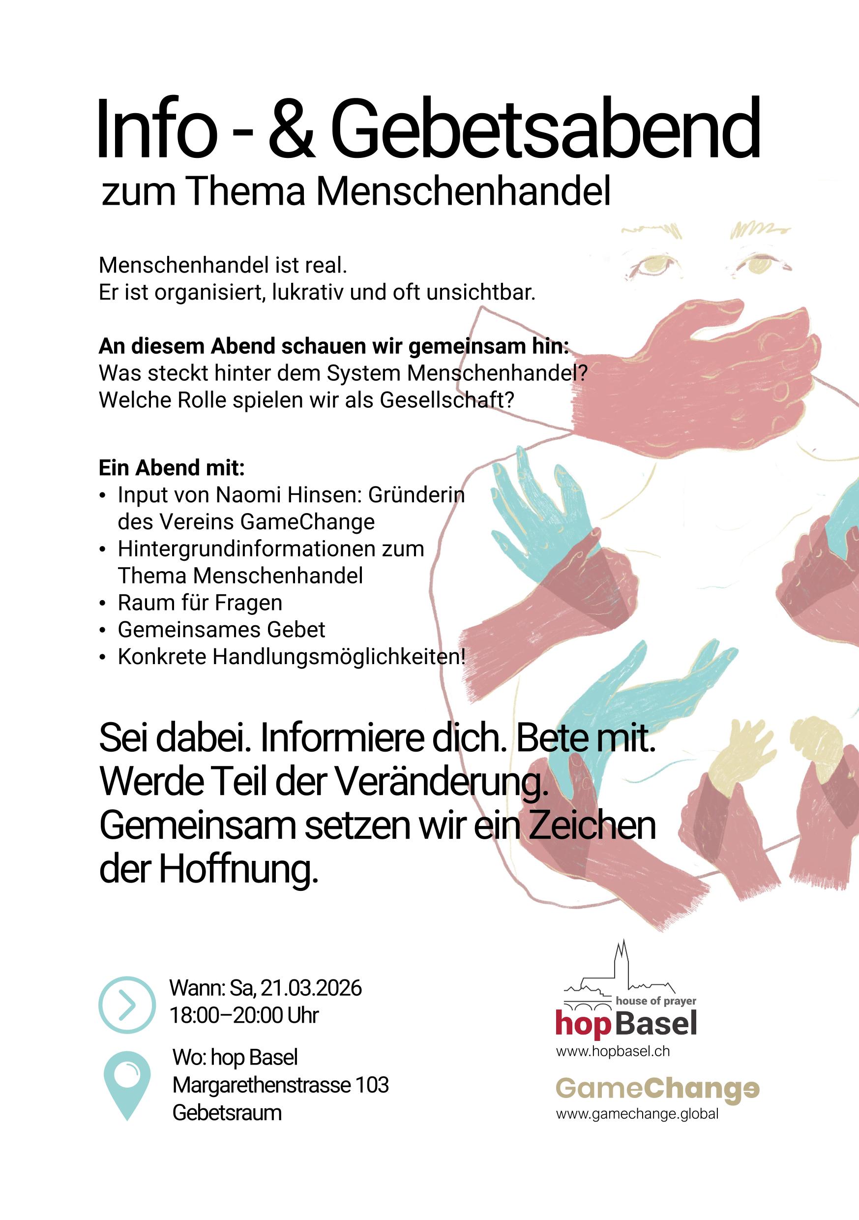 Informationen zum regelmässigen Programm im hop Basel findet ihr im Gebetsraum-Kalender und unter Spezielle Angebote.